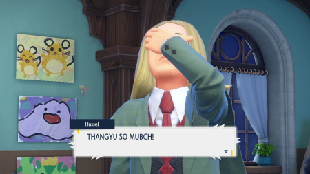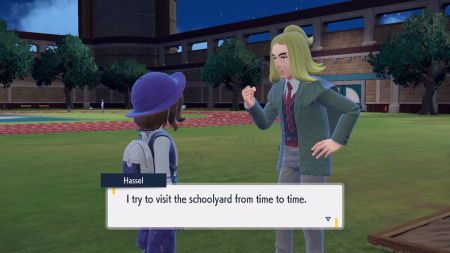 Your continuing conversation with Hassel is mostly about his role as an art teacher or as an Elite Four member as a guest coach in Blueberry academy. He expresses his worry about how busy the students seem to be and how there isn’t much leisure time for them. He’s also worried for you too in a similar manner.