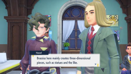 The fourth art class is a rather famous one. As a reward for everyone doing well in the mid-terms, Hassel brings in a Gym leader you’re most likely already familiar with - his dear friend Brassius, the Gym leader of Artazon. You quickly see that these two are so close that they even have nicknames for each other - “Hass” and “Brassie”. Hassel asks Brassius to use his own experiences as an artist to teach something in class today.