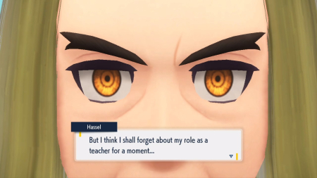 Now, the woman you saw earlier is a relative of Hassel, and is asking him to stop teaching and return to his family home. Apparently Hassel’s father, the current family head, is in rather poor health, implying that there will be no family head at all soon if Hassel doesn’t return home. Hassel apologizes to you again for talking about his family issues to a student of his and belittles himself as a teacher for doing so. You tell him that he’s a great teacher, which means a lot to him and he is deeply thankful for your encouragement…